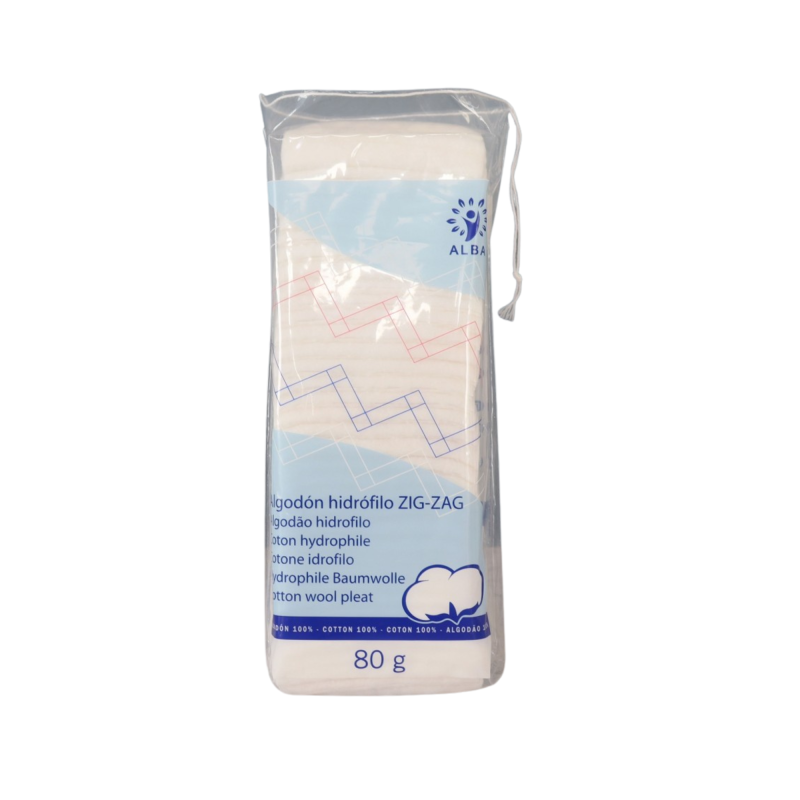 El Algodón Zig-Zag Alba 80 g está elaborado con fibra 100% natural, ofreciendo una textura suave, esponjosa y de gran absorción.