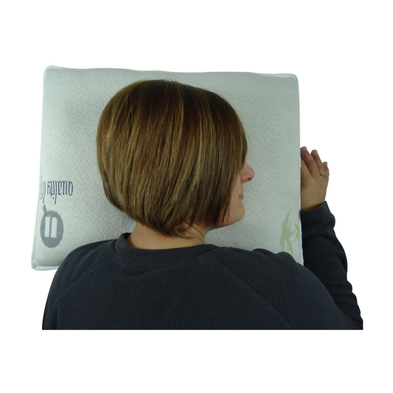 Esta almohada con tejido de fibras de bambú biodegradables, cuenta con un orificio en la parte central que ayuda a liberar la presión de un postoperatorio de oído, o ya sea también por riesgo de aparición de escaras.