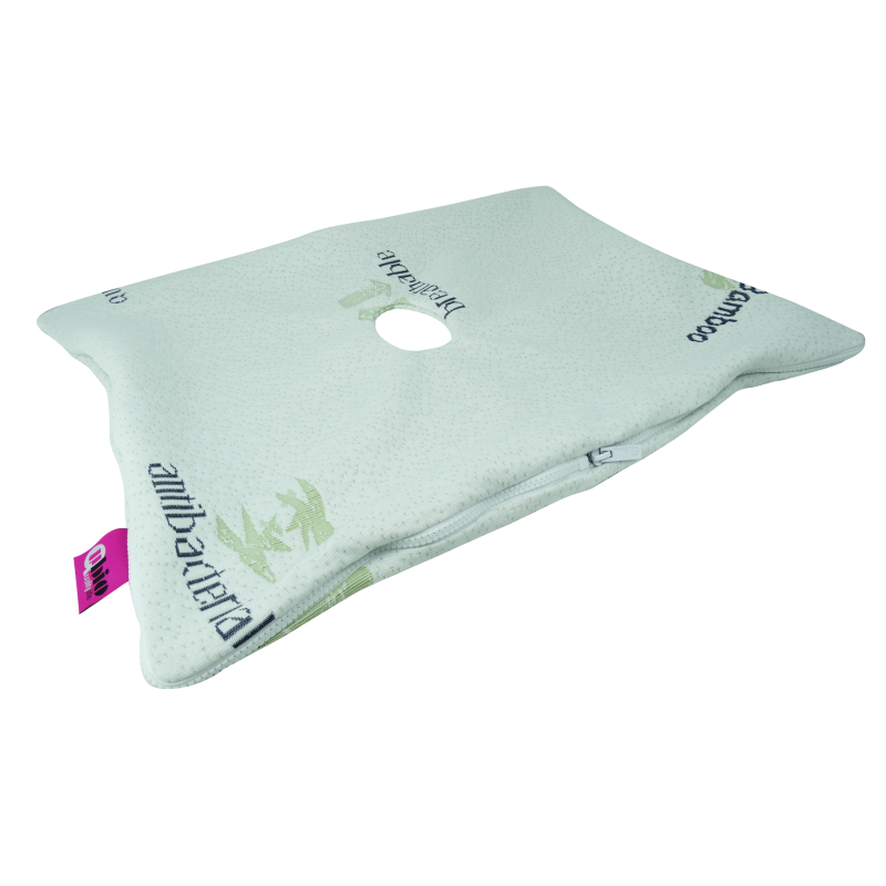Gracias a su orificio central se consigue una reducción de presión en la zona de la oreja, tras úlceras, inflamaciones o postoperatorios.