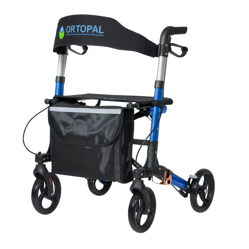Su diseño incluye un asiento acolchado de 45 x 25 cm y respaldo acolchado para mayor comodidad, además de una asa ajustable y un soporte para bastones o muletas.