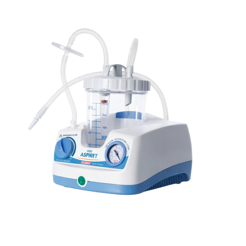 Aspirador eléctrico para la aspiración de fluidos corporales, orales, nasales y traqueales en adultos y niños.