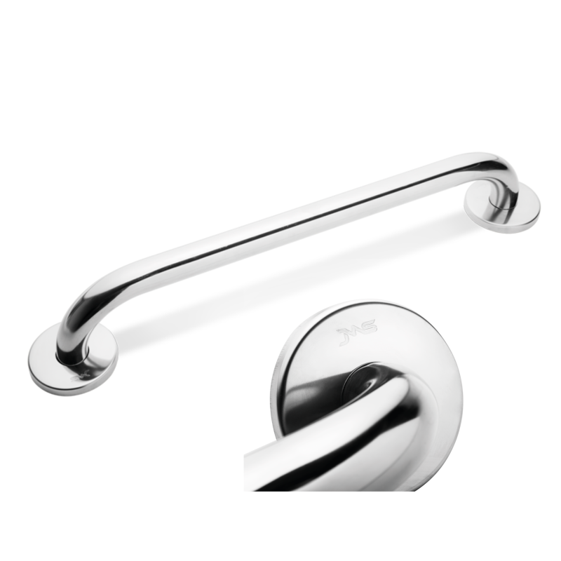 Asideros de acero inoxidable que permiten apoyarse o agarrarse con fuerza en el baño a personas con movilidad reducida.
