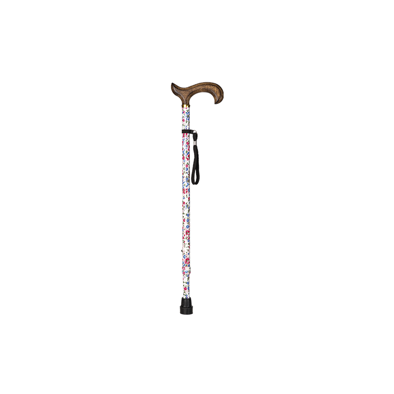 Bastón fabricado con aluminio resistente, ofrece ajuste de altura y estabilidad.