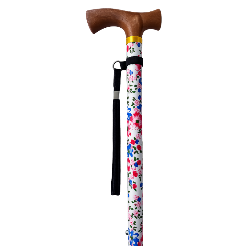 Bastón fabricado con aluminio resistente, ofrece ajuste de altura y estabilidad.