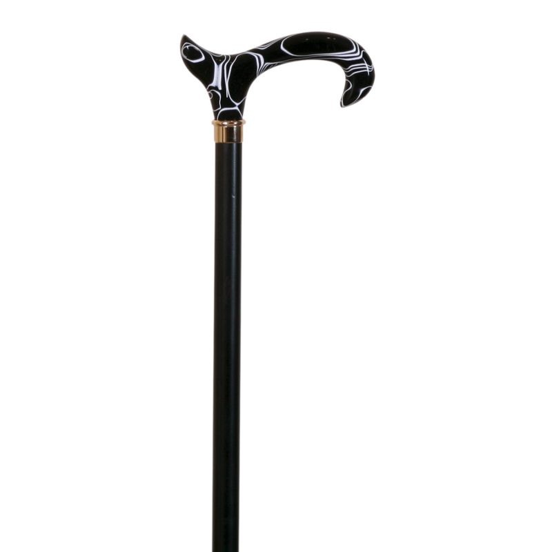 Muletilla fabricada en haya negro con puño derby de metacrilato negro y blanco