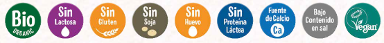 Intolerancias: Bio organic, sin lactosa, sin gluten, sin soja, sin huevo, sin proteína láctea, fuente de calcio.