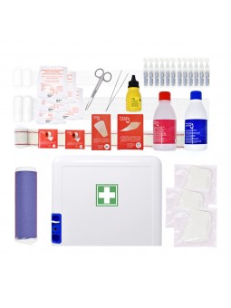 El botiquín de primeros auxilios ofrece productos médicos para una primera ayuda óptima en caso de emergencia.