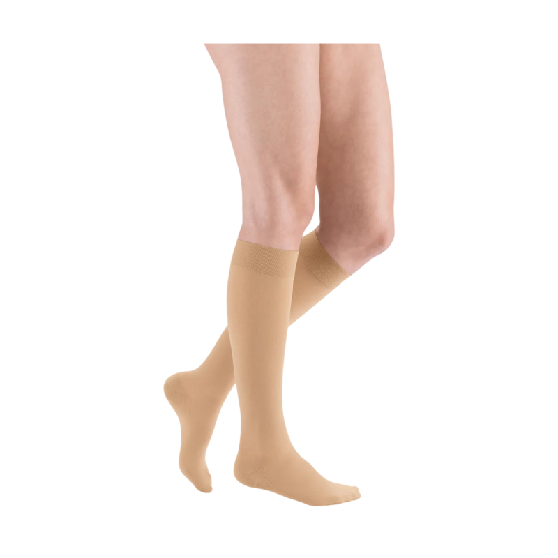 Mediven plus® se caracteriza por su alta durabilidad. El producto está disponible como media por debajo de la rodilla, como media hasta el muslo o como corpino. La braguita