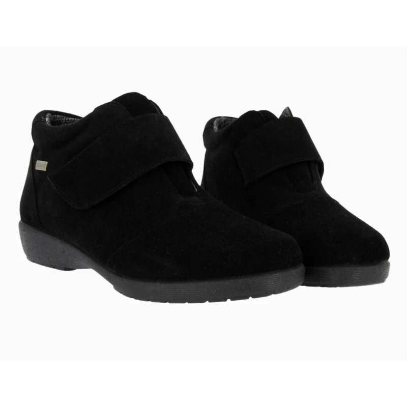 Botín de serraje para mujer con tecnología SECOTEX. Una membrana hidrofuga y transpirable exclusiva de Doctor Cutillas que dificulta la entrada de agua en los pies, y al mismo tiempo facilita la evaporación de la humedad, manteniéndolos secos y evitando malos olores.