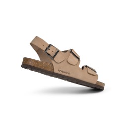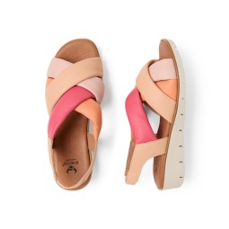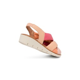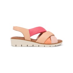 Sandalia de piel con cuña y planta muy acolchada. Especialmente indicada para pies delicados.