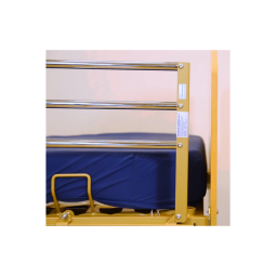 Barandilla extensible para alargarla o acortarla a conveniencia. Además, se puede abatir para salir y entrar en la cama con más comodidad.