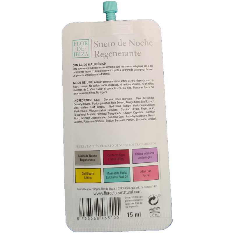 Suero regenerante con gel hialurónico que ayuda a regenerar tu piel mientras duermes, contiene vitamina C y antioxidantes previniendo el envejecimiento prematuro de la piel.