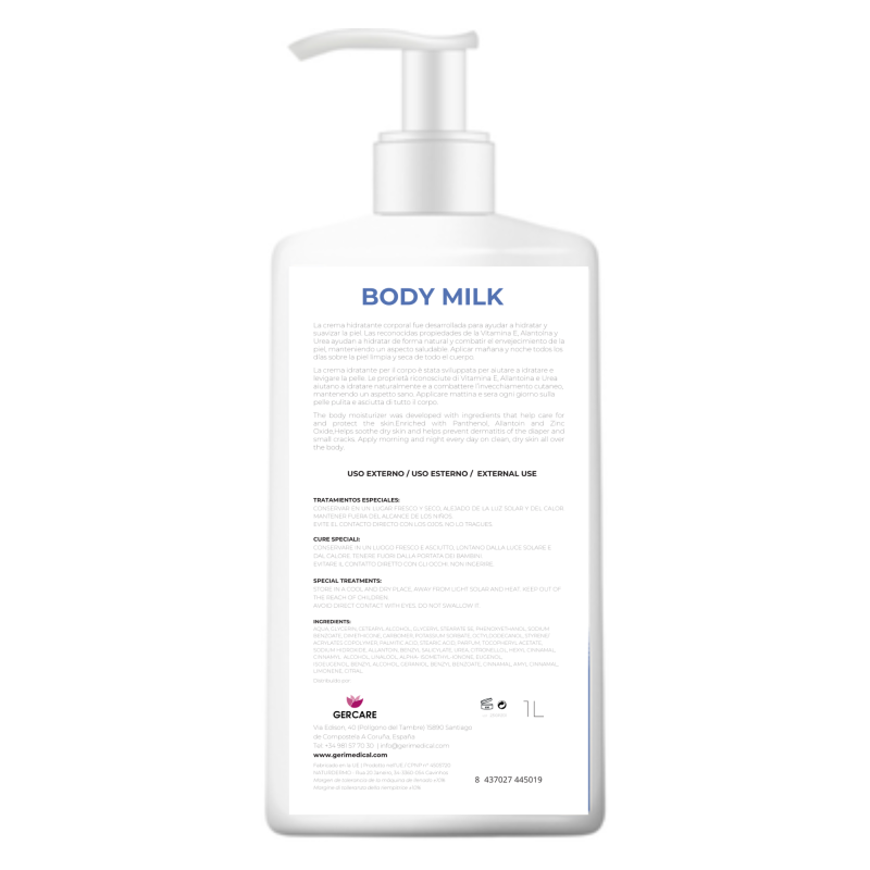 Crema hidratante corporal enriquecida de Vitamina E, Alantoína y Urea, aportando una mayor hidratación y tersura a la piel.