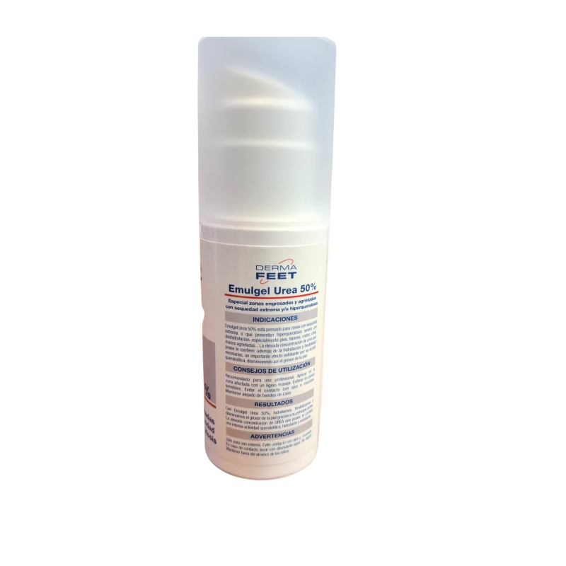 El Emugel Urea 50% Dermafeet está indicado para zonas con sequedad extrema o que presentan hiperqueratosis severa por deshidratación, especialmente pies, talones, codos, uñas, manos agrietadas... Importante efecto exfoliante por su acción queratolítica, disminuyendo así el grosor de la piel.