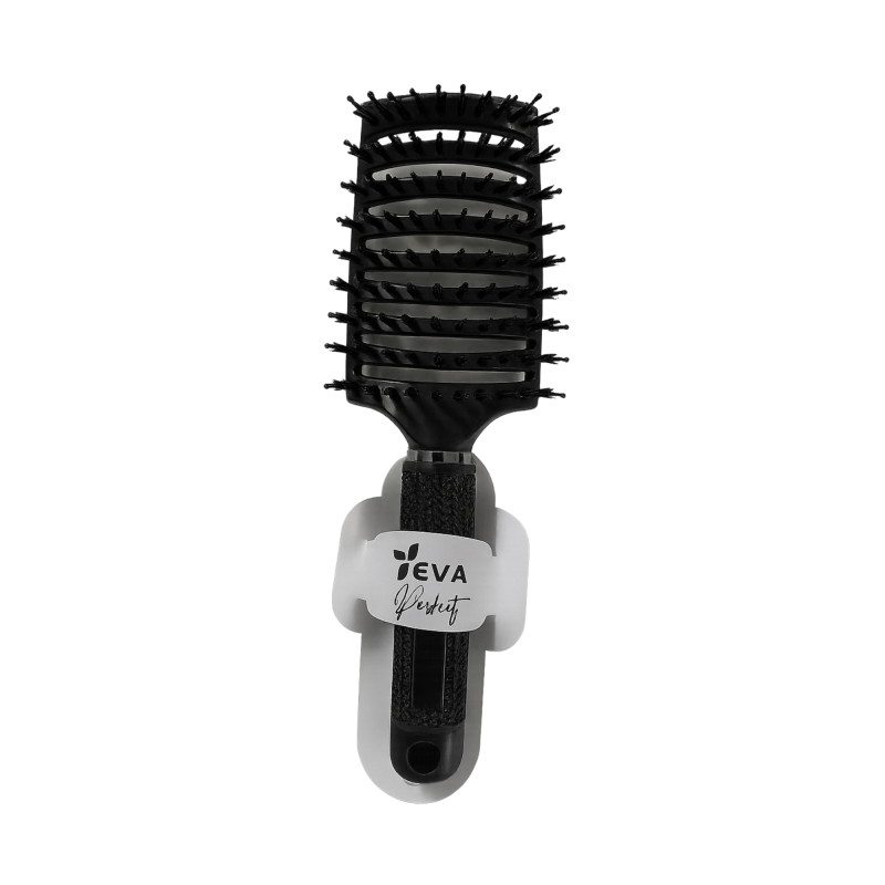 Cepillo de pelo con mango ergonómico negro, pensado para ofrecer un peinado cómodo, controlado y eficiente en el uso diario.