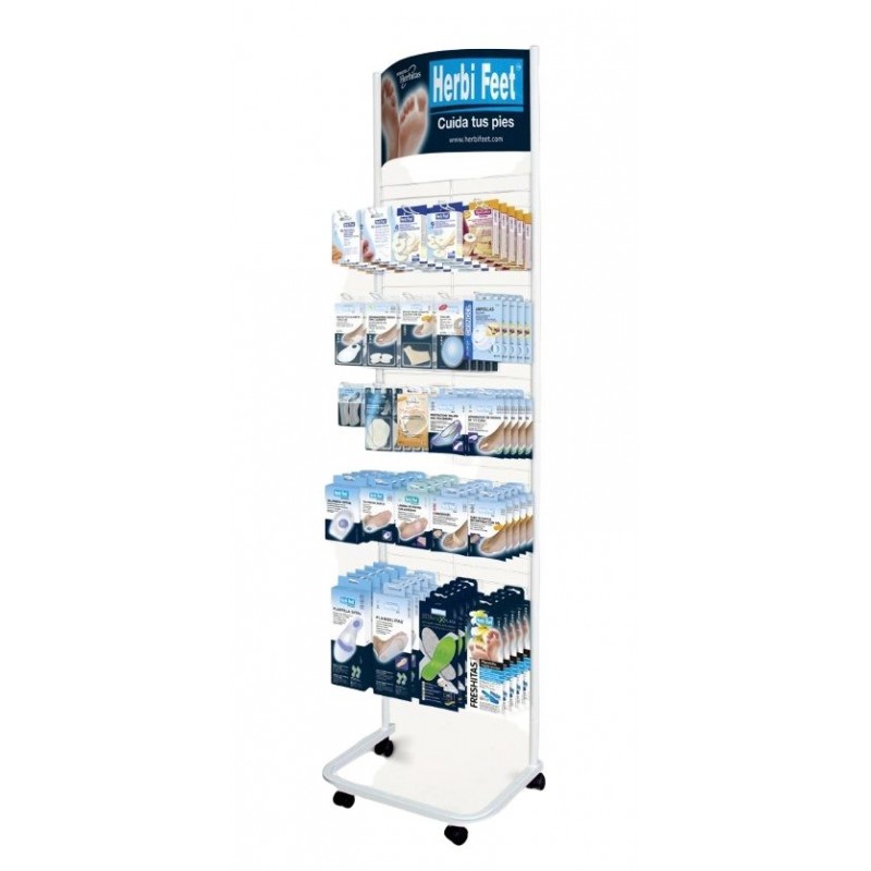 Expositor metálico con ruedas con ruedas.