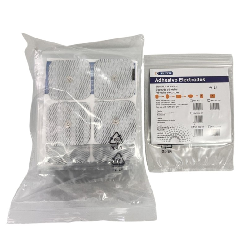 Electrodos Desechables KLMED para TENS y EMS garantizan una estimulación eléctrica cómoda y fiable, gracias a su diseño en formato cuadrado de 50 x 50 mm y su conexión mediante botón.
