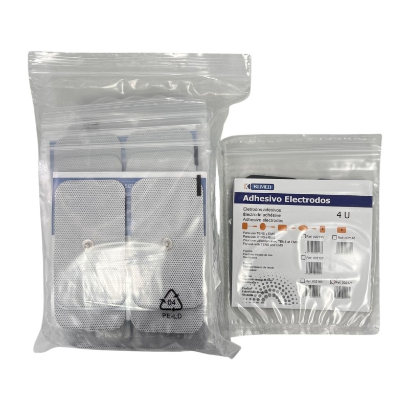 Electrodos Desechables KLMED para TENS y EMS garantizan una estimulación eléctrica cómoda y fiable, gracias a su diseño en formato rectangular de 50 x 90 mm y su conexión mediante botón.