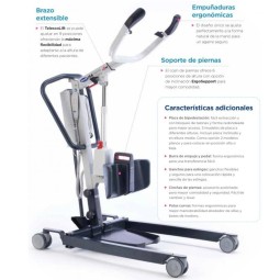 Grúa de traslado ligera y compacta diseñada para elevar y transferir aquellos pacientes con movilidad reducida.