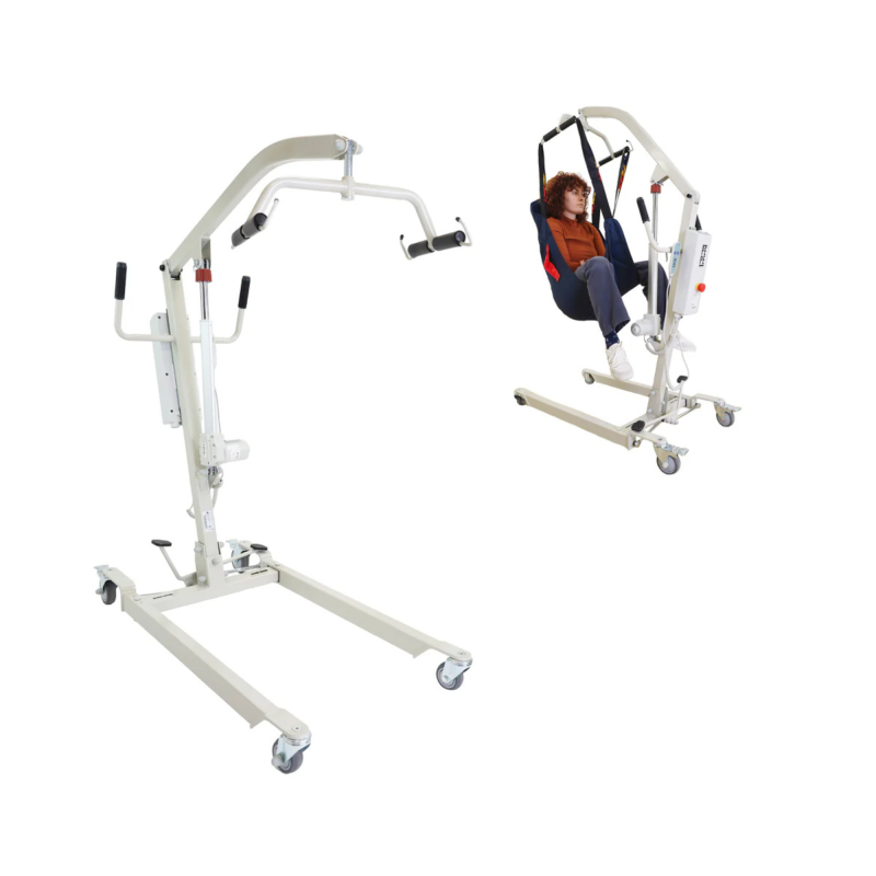 Grúa de transferencia eléctrica que permite mover personas encamadas sin grandes esfuerzos.