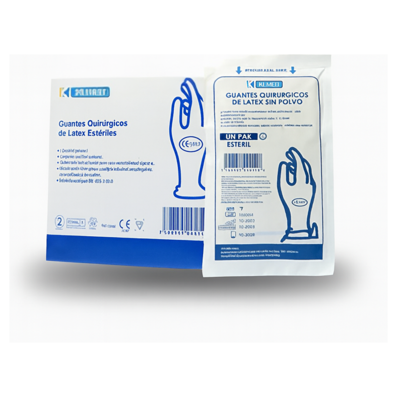 Guantes quirúrgicos estériles de látex sin polvo y de un solo uso, diseñados específicamente para profesionales de la salud.