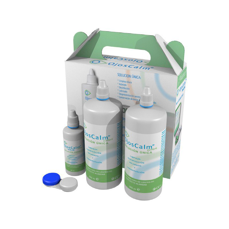 Líquido para lentes de contacto OjosCalm Confort. Solución única en diferentes formatos.