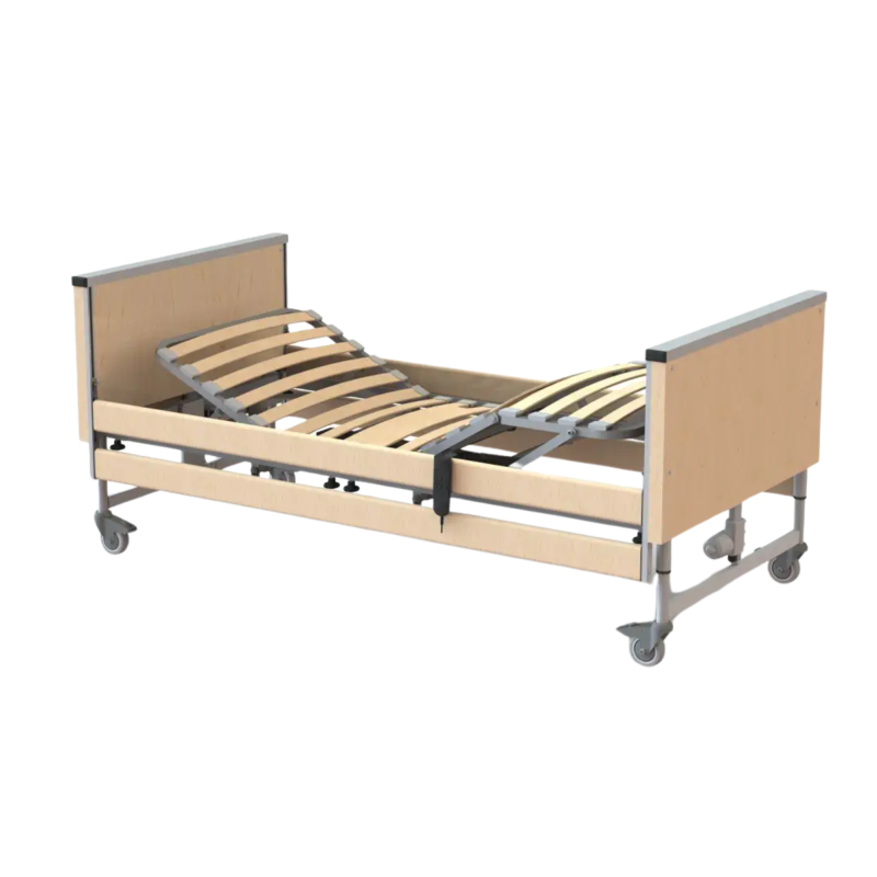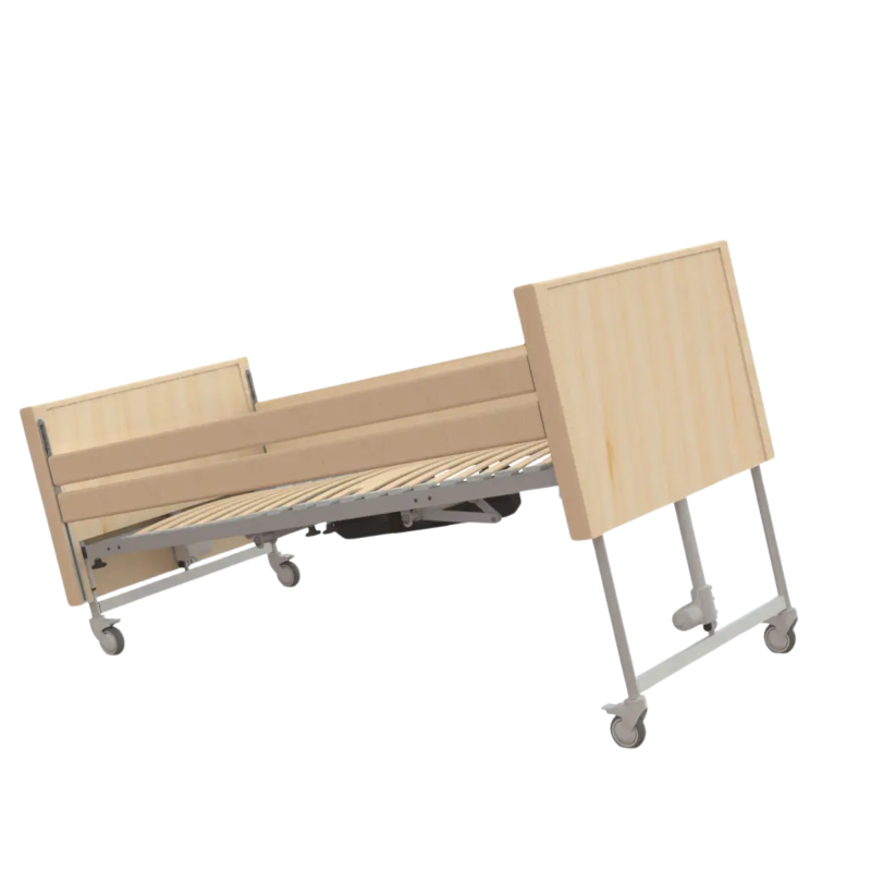 Cama eléctrica articulada diseñada para ofrecer confort, seguridad y funcionalidad clínica, con sistema de altura variable que facilita el acceso del usuario y el trabajo del cuidador. Dispone de lecho de 4 planos articulados en 3 secciones mediante motor eléctrico, controlado por mando manual, permitiendo adoptar posiciones terapéuticas como Fowler, vascular, Trendelenburg y Anti-Trendelenburg. Su estructura combina acero con recubrimiento epoxi y madera de haya, aportando resistencia, estabilidad y confort en el uso diario.