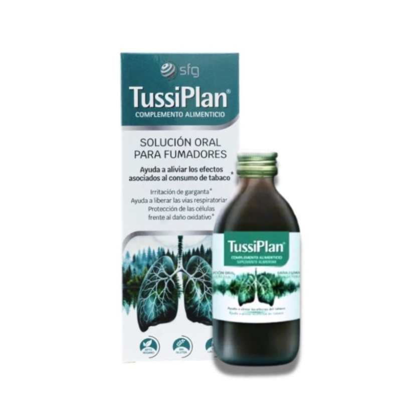 Tussiplan Jarabe Fumadores una solución oral que ayuda a aliviar los síntomas asociados al consumo de tabaco: tos, irritación de garganta, mucosidad, daño oxidativo.