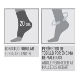 Tobillera envolvente de neopreno para una perfecta adaptación a diferentes morfologías. Incluye orificio para el talón y cierre proximal en velcro para una perfecta adaptación anatómica.