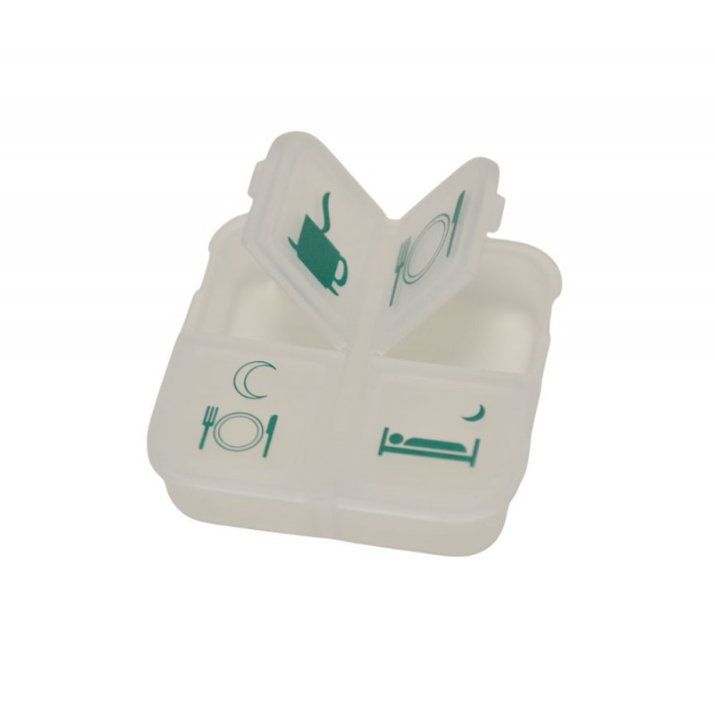 Pastillero de bolsillo con 4 compartimentos independientes.