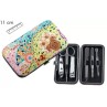 Incluye: 2 cortauñas, 1 tijera de uñas, 1 lima, 1 pinza de depilar, 1 empujador de cutículas
