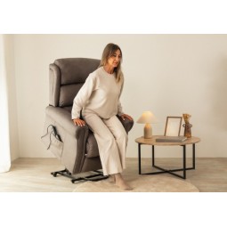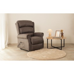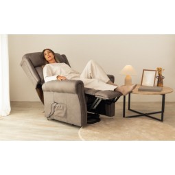 • Reclinación: El sillón permite inclinarse hacia atrás y elevar el reposapiés mediante un mecanismo manual, facilitando distintas posiciones de descanso, desde sentarse hasta estar prácticamente acostado.