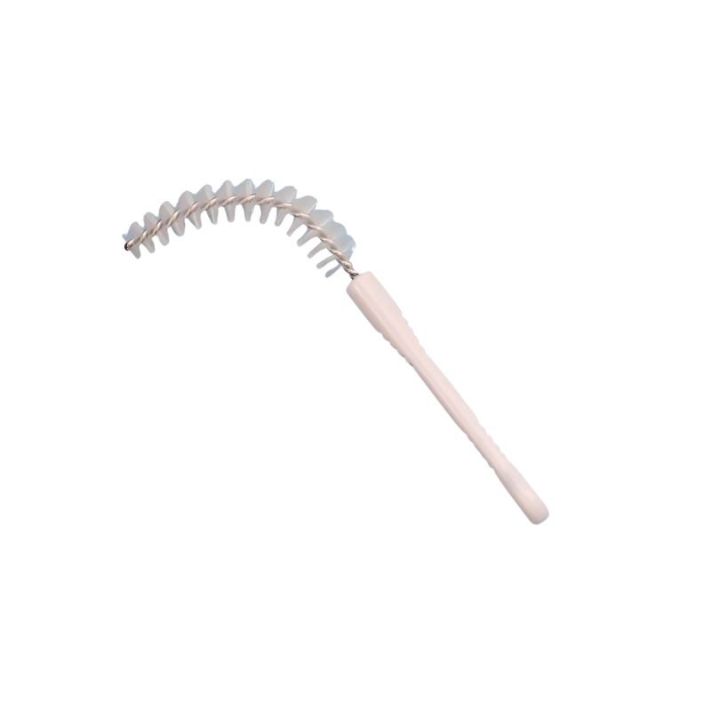 De forma curva con unas cerdas de nylon rizado que ayudan a facilitar su introducción y un mango moldeado para una mayor comodidad, ayudando a facilitar la limpieza en las zonas internas de las canulas.