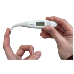Este modelo detecta la fiebre de manera exacta y segura gracias a su fácil uso y alta precisión. Está libre de mercurio y solo necesita un pila de botón para funcionar, la cual va incluida con el termómetro.