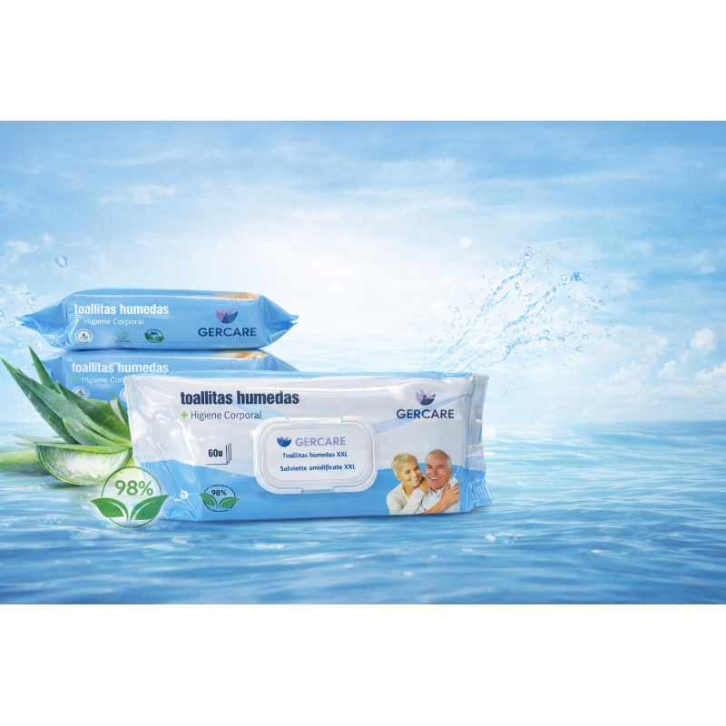 Toallitas húmedas, extra grandes, para la limpieza corporal en adultos.