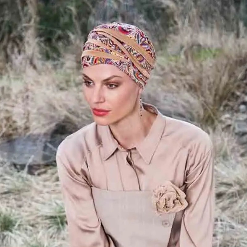 Turbante oncológico y para alopecia adecuado para todo tipo de pieles, incluso las más sensibles.