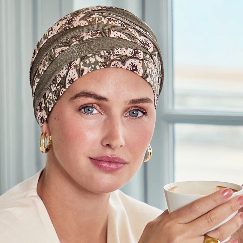 Turbante oncológico y para alopecia adecuado para todo tipo de pieles, incluso las más sensibles.