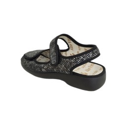 Zapato confortable con apertura completa gracias a los dos sistemas de cierre, ideales para señoras con dificultades para agacharse.