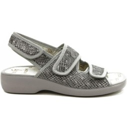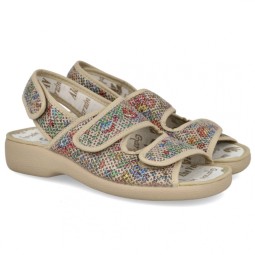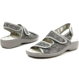 Puntera abierta, elásticos en pala y cierre de velcro en talón.